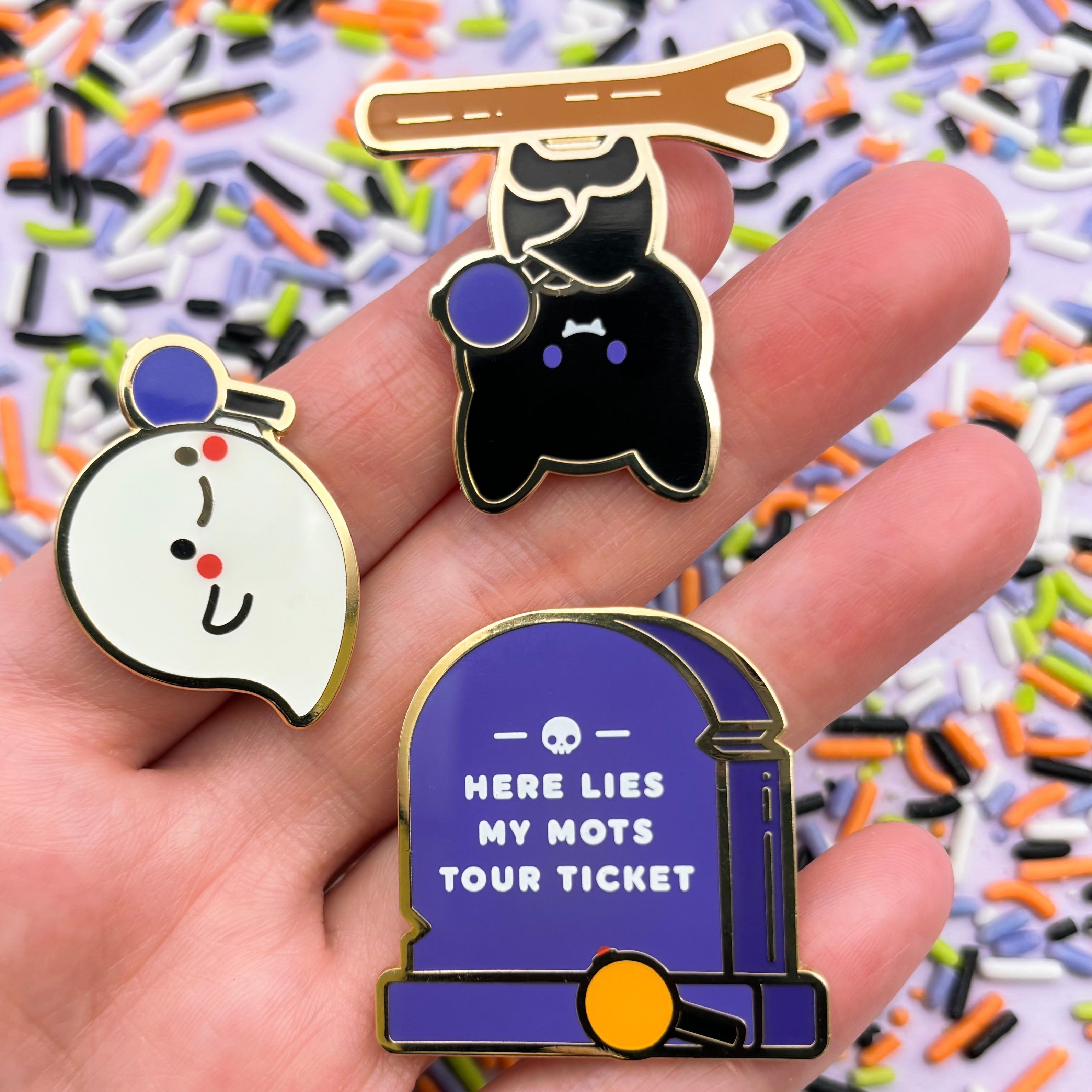 Freshly baked Halloween sugar cookie pins featuring Yoongi kitty and ghost ARMY