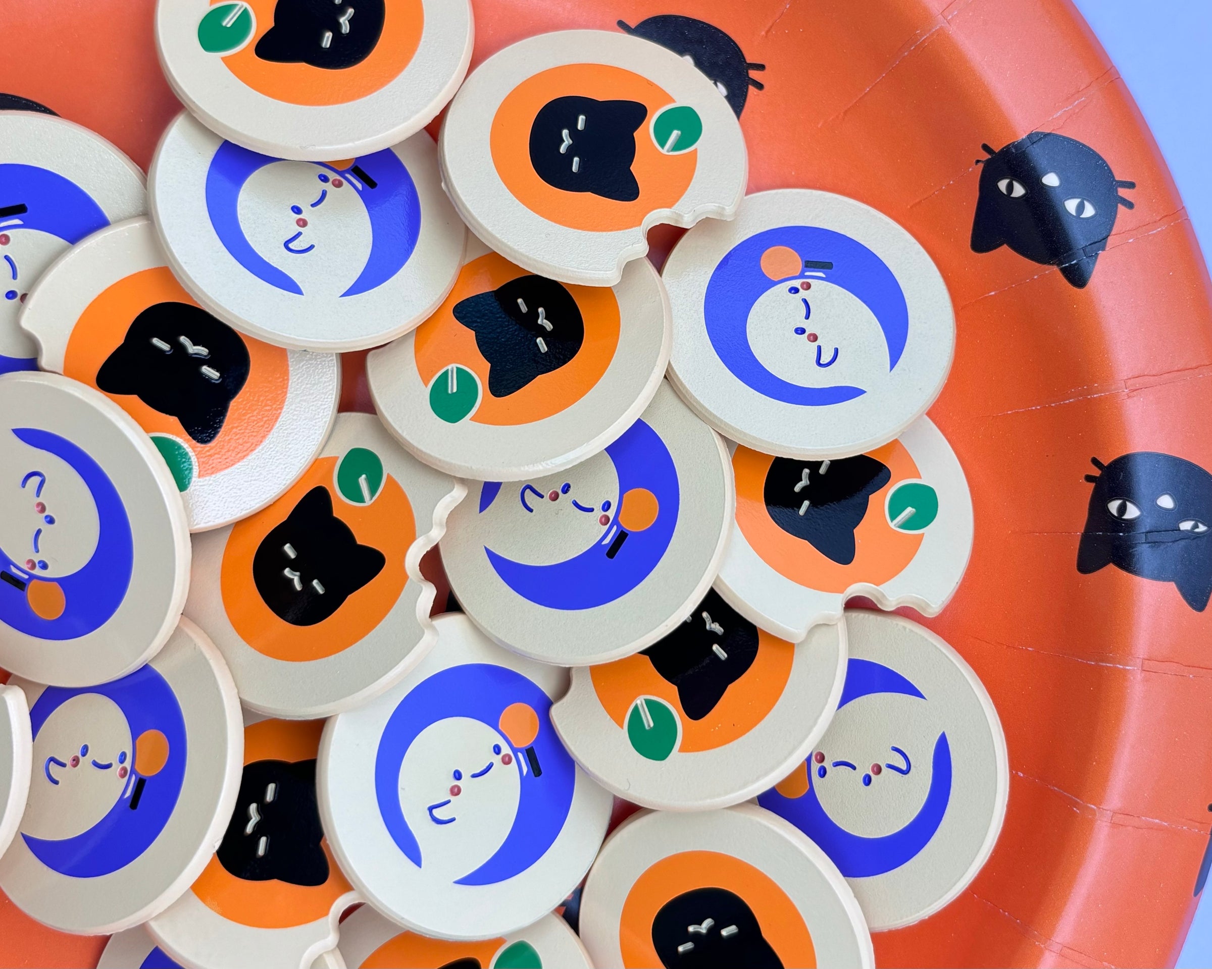 Freshly baked Halloween sugar cookie pins featuring Yoongi kitty and ghost ARMY