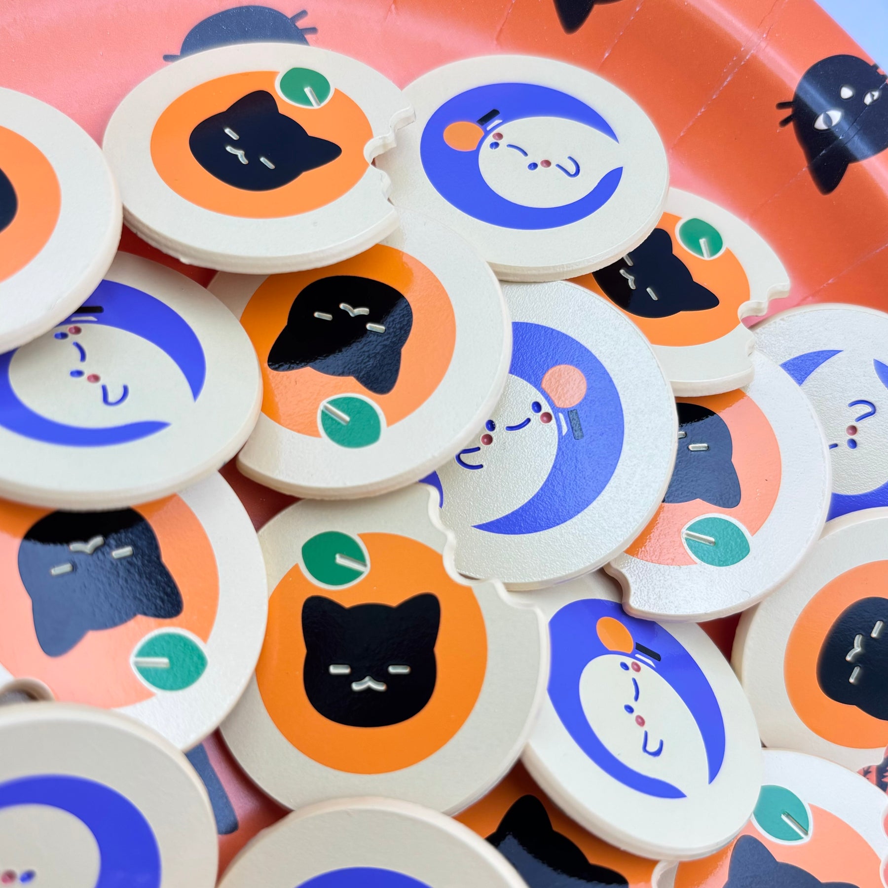 These cute pins are inspired by Halloween sugar cookies and feature a tangerine Yoongi kitty and a ghost ARMY! The metal is dyed so they look like real cookies.